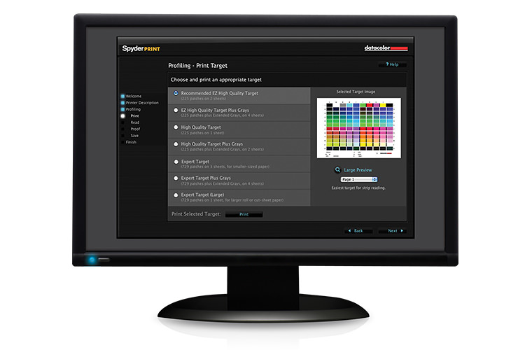 - Speed and Accuracy – Spyder Print’s extensive profiling target setups enable you to create custom profiles in minutes using our unique strip-reading and guide system. Target setups range from 225 to 729 patches with an additional option of 240 patches specifically for printers with multiple black inks.