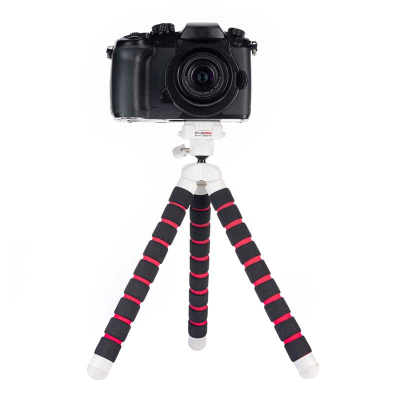 At 11”/28 cm. high and 0.344 lbs./156 g., the Spyder Tripod Pro affords great versatility and comes with a GoPro mount, smartphone holder and Bluetooth Universal Remote for the ultimate in hands-free image capture and video work. Maximum weight-bearing capacity is 800 g./1.7 lbs.