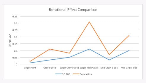Di recente abbiamo condotto un test di rotazione di campioni su diverse superfici strutturate con Datacolor 800 rispetto a uno strumento della concorrenza: il risultato parla da sé.