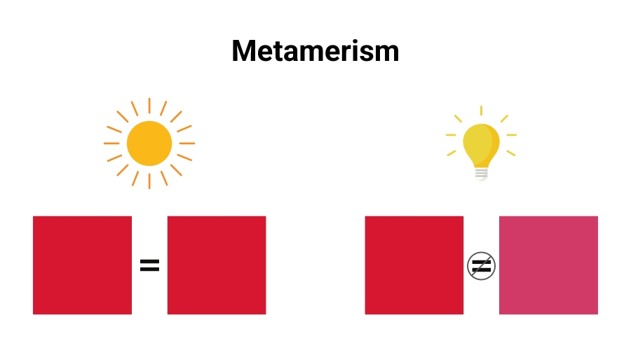 In poche parole, gli oggetti metamerici sembrano identici sotto una sorgente luminosa ma rivelano le loro vere differenze sotto un’altra.